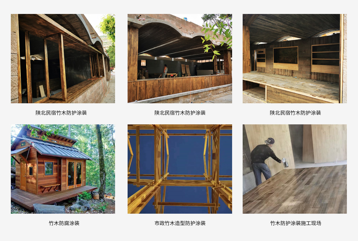 该产品以四氟乙烯-乙烯基醚共聚树脂为主要原料,制作过程中接枝了纳米硅基团。采用杜邦钛白、氧化铁红等无机陶瓷颜料,以及毕克等优秀助剂制作成涂料,与拜耳公司的固化剂产品搭配成膜。涂层成膜物的C-F键能非常高,紫外线能量不容易破坏其分子键结构,加上纳米硅基团的加入,提供了其超强的抗紫外线能力即耐候性。四氟乙烯-乙烯基醚共聚树脂与固化剂反应成膜后微观上形成三维网状结构,同时纳米硅的存在让涂层的防水性能极其优异,涂层在PET材质上涂覆后测试其水汽透过率极低,达到了电子级要求。氟硅纳米涂层具有超强的耐候性,超强的耐腐蚀性,超强的防蛀功能,因此能有效的保护竹木本体。装饰性强,颜色丰富,可以使原本生硬的竹木结构变得生动而富有生机。防水汽透过性能高,能有效防止木材变形及霉菌的滋生。使用寿命可达十五年。